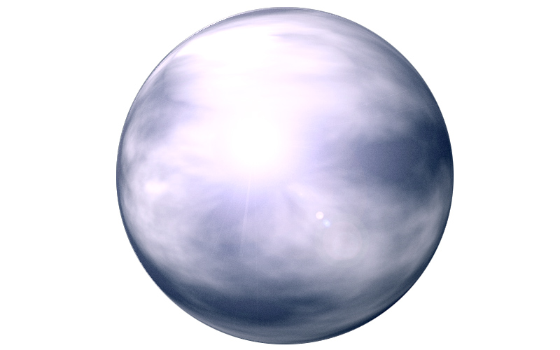 空と宇宙を連想させる深くまばゆいガラス玉。背景は白です。